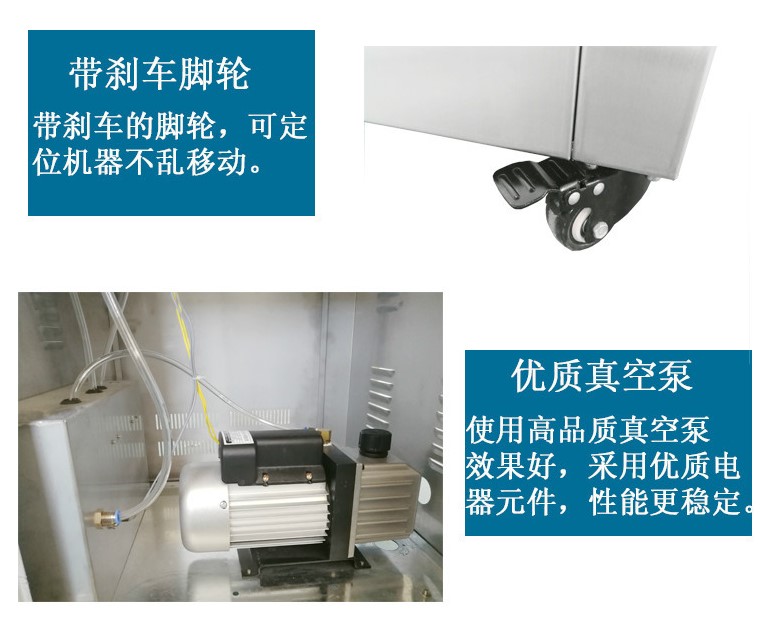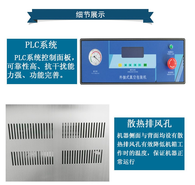 電源 220/50HZ  電機功率 0.36KW  熱封功率 0.95KW  抽氣速率 6.5m³/h  充氣速率