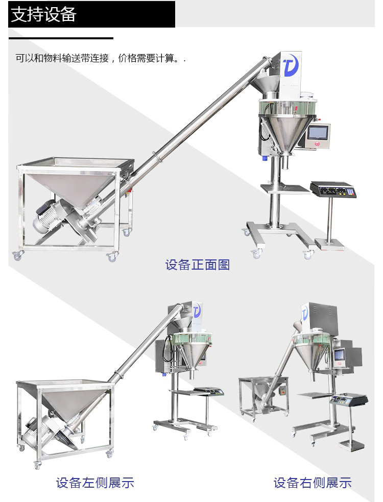 該粉劑包裝機適用于有一定流動性的粉劑狀、顆粒狀物料,可適合袋類、罐類、瓶類等各種包裝容器粉劑定量包裝,速度快、精度高。如農(nóng)藥、獸藥、預混料、添加劑、奶粉、淀粉、調(diào)味品、酶制劑、飼料等粉劑狀、雞精、餃子粉、葡萄糖、奶粉、綠豆粉、淀粉、調(diào)味料、飼料、顆粒狀物料的定量包裝。粉劑包裝機可以使用各種可熱封合的復合膜包裝材料,其包裝材料可印刷成連續(xù)商標圖案,也可以印刷成帶有色標的單袋完整商標圖案。