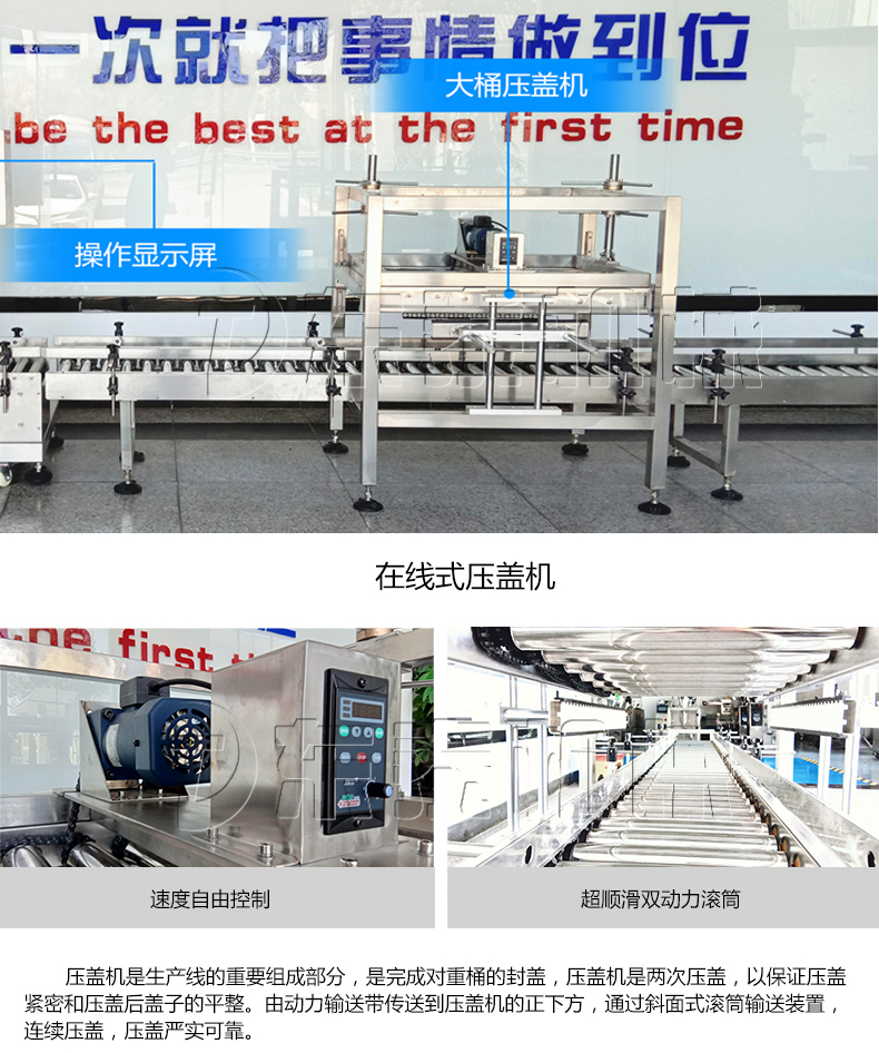 稱重式灌裝封口生產(chǎn)線為半自動單頭稱重式灌裝機(jī)搭配在線式壓蓋機(jī),設(shè)備小巧、實(shí)用適合5-30KG敞口桶的灌裝(其它桶型可定制),灌裝時(shí)由人工放置空桶,并啟動開始按鈕,待灌裝完畢后放蓋并將桶推岀灌裝位置,動力滾筒自動傳送至壓蓋杋進(jìn)行壓蓋。壓蓋完畢后可輸送至成品輸送機(jī)上完成整個(gè)操作過程,全程僅需一人即可完成整個(gè)生產(chǎn)過程。此型號灌裝機(jī)為客戶大大降低了生產(chǎn)勞動成本,是大中小型液體灌裝企業(yè)的理想選擇。