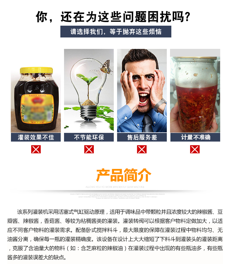 備注:果醬、醬料、花生醬、番茄醬、醬料、豆瓣醬、辣椒醬、蝦醬、蘋(píng)果醬、沙拉醬、魚(yú)子醬、辣醬均可以灌裝。