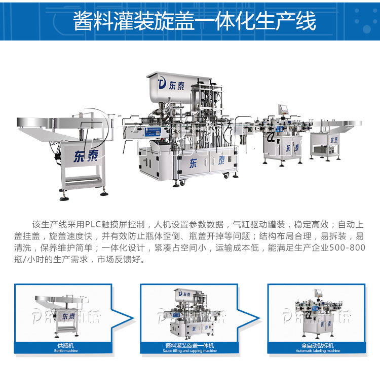 醬料的銷售情況直接關(guān)系到市場(chǎng)的發(fā)展,而醬料要想有一個(gè)好的銷量的話,就需要有好的質(zhì)量作為保障的,而這個(gè)保障就是給予醬料好的灌裝效果,所以這也使自動(dòng)化醬料灌裝機(jī)成為了各企業(yè)生產(chǎn)包裝的得力助手,能有效的完成灌裝任務(wù),在規(guī)格化標(biāo)準(zhǔn)化中更加合理化,對(duì)各種醬料不僅起著保護(hù)的作用,還更為企業(yè)創(chuàng)造著更多的方便,正是因?yàn)槲覀儢|泰一直以來都是敢于挑戰(zhàn)、敢于創(chuàng)新和突破讓自己的實(shí)力在市場(chǎng)有了很大的進(jìn)步,來推進(jìn)醬料企業(yè)生產(chǎn)之后,從而帶來各個(gè)領(lǐng)域的快速的發(fā)展。